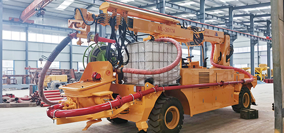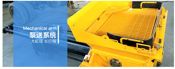 3、同步速凝劑添加采用進口軟管泵,液壓馬達驅動,電比例流量閥調節(jié)轉速以達到調節(jié)流量的目的,液晶顯示和觸屏設置速凝劑添加比例,且在屏幕和器上均可隨時修改設置,速凝劑的添加量緊隨砼的泵送量同步變化而保持添加比例按設定值運行,這些均由可編程控制器控制。由此可實現對速凝劑添加量的控制,以達到效果,回彈和節(jié)約速凝劑的目的。機器上配有容積為1.0m³的耐腐蝕塑料材質的速凝劑容器,速凝劑軟管泵也可從外部容器中抽吸速凝劑,根據實際情況可方便地進行切換。